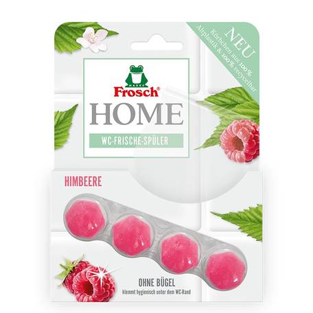 Frosch EKO WC blok Malina vytváří s každým spláchnutím malinově svěží čistící pěnu.