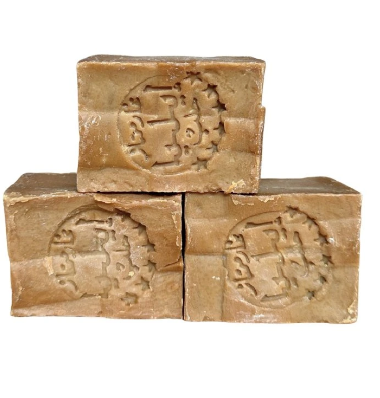 • Během sušení získává vnější část kostek zlatohnědou barvu, zatímco vnitřek zůstává tmavě zelený Rozřízněte si Aleppské mýdlo na dvě části a uvidíte, jak nádherně tato kombinace barev vypadá ! Mýdla jsou velmi hustá a extrémně vydatná.