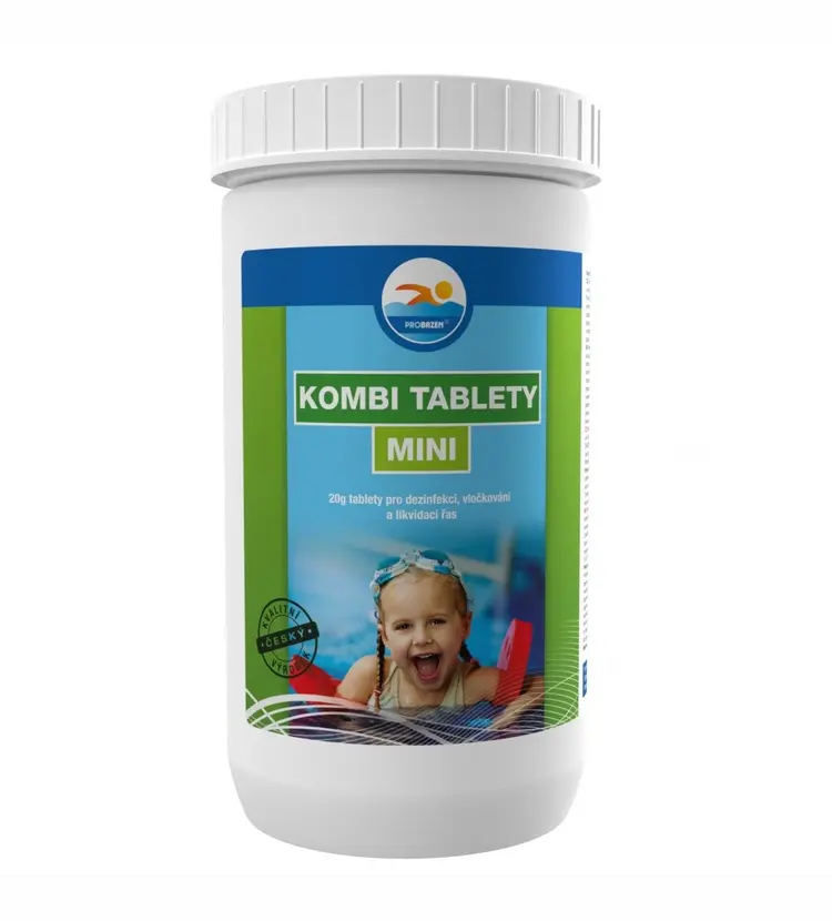 Pak se vloží do plováku, nebo zásobníku tablet 1 ks KOMBI TABLETY MINI na 2-3 m3 vody v bazénu. Toto množství by mělo stačit na udržení potřebné koncentrace 0,3-0,5 mg/l aktivního chloru ve vodě na 5 až 10 dnů v závislosti na faktorech, které ovlivňují množství aktivního chloru ve vodě, jako jsou teplota vzduchu a vody, intenzita slunečního záření a zatížení bazénu